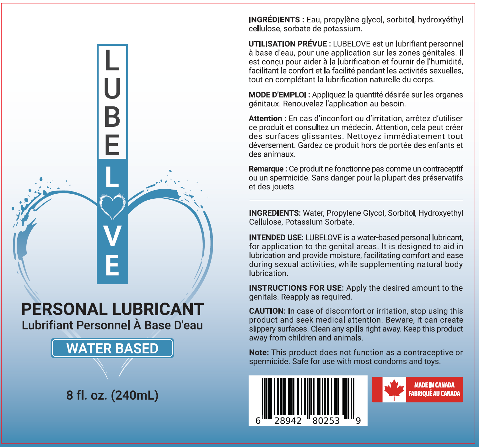 LubeLove Premium Water-Based Lubricant